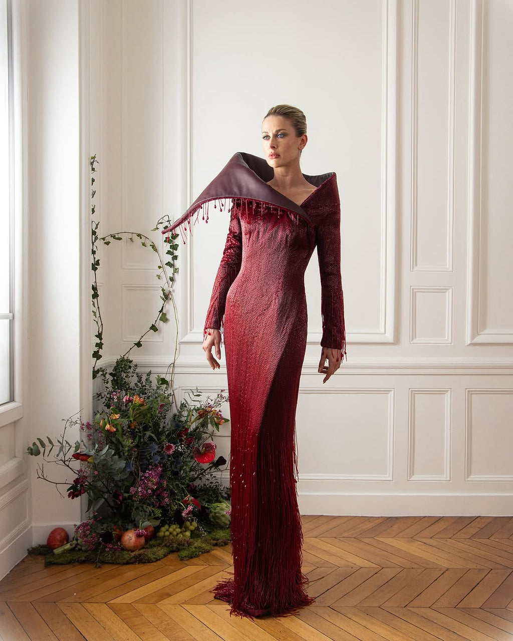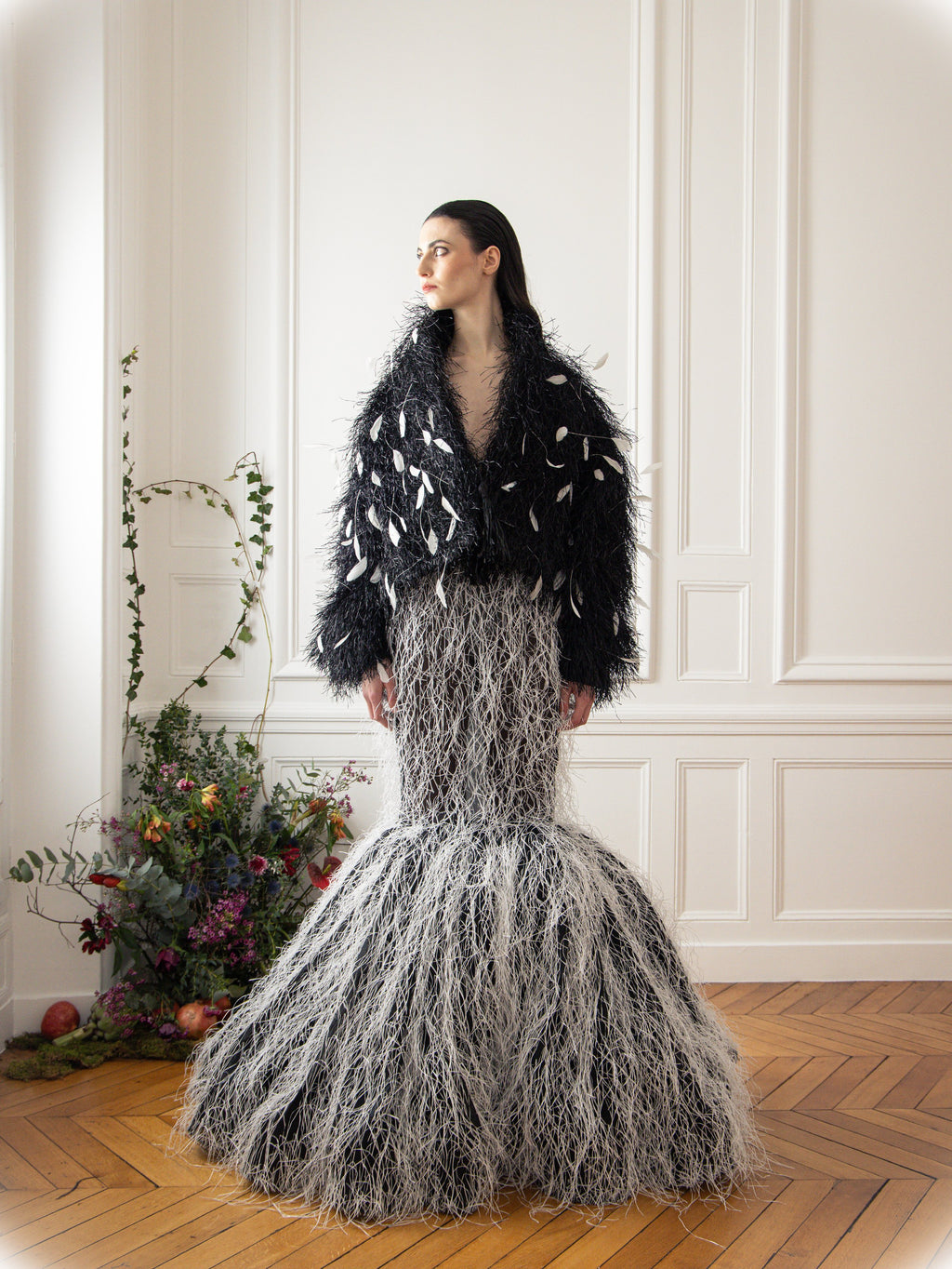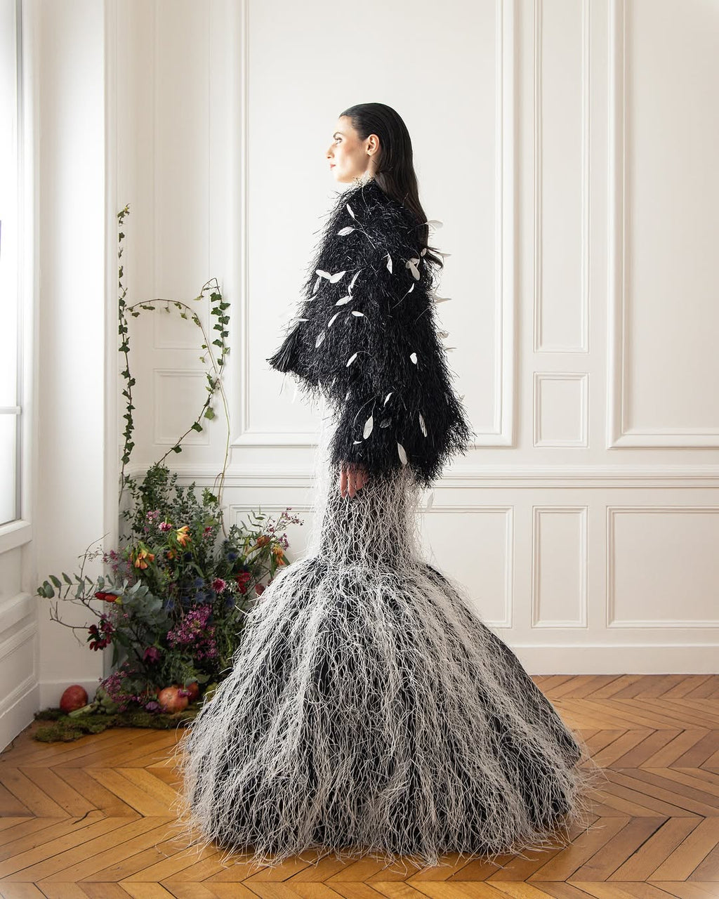 ABAD is a profound tribute to the resilience of the human spirit, encapsulating the layered meanings of always or forever. Forever trying, forever doing, forever being, this serves as a metaphor for the collection's journey honoring the trials and triumphs of the past while embracing the obstacles of the present and looking forward to the future with unshakable optimism. Each piece tells a poignant story of navigating grief, recurring failures, and the unpredictable rhythms of life. Dark, intricate fabrics represent sorrow and struggle, while bold and luminous accents signify hope and renewal. The collection crescendos into designs that embody growth, self-realization, and the triumph of flourishing through adversity. #ABAD captures the essence of enduring challenges and emerging stronger, celebrating the timeless beauty of transformation and the boundless promise of tomorrow. ABAD, also now, also then… the new SS25 Haute Couture Collection by #ElioAbouFayssal.