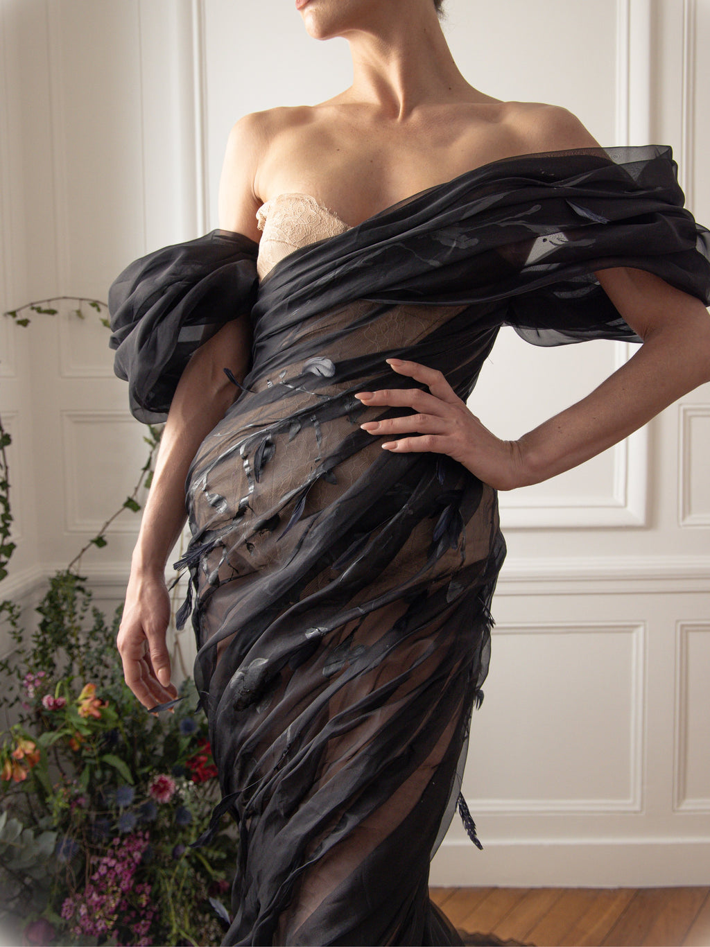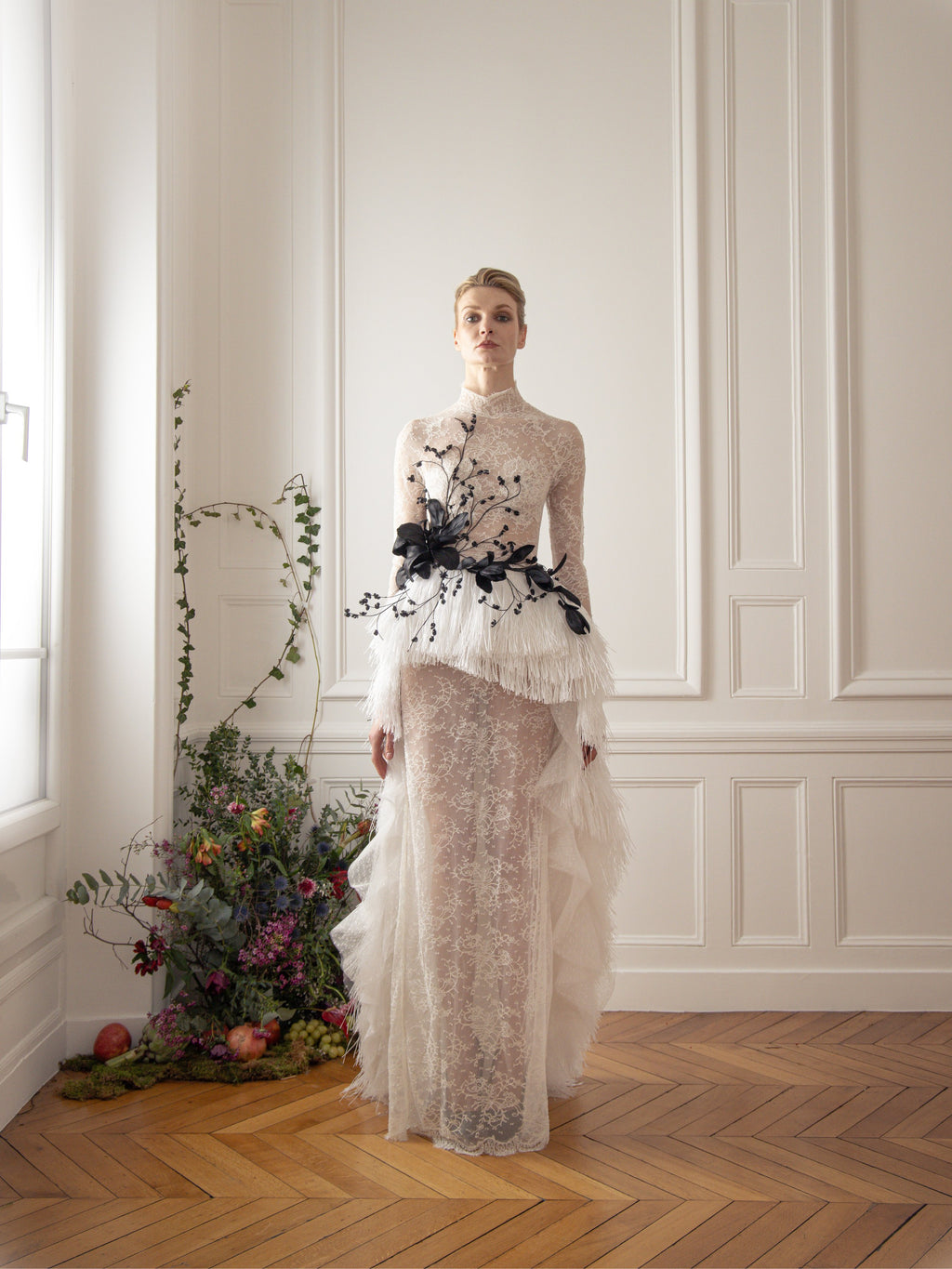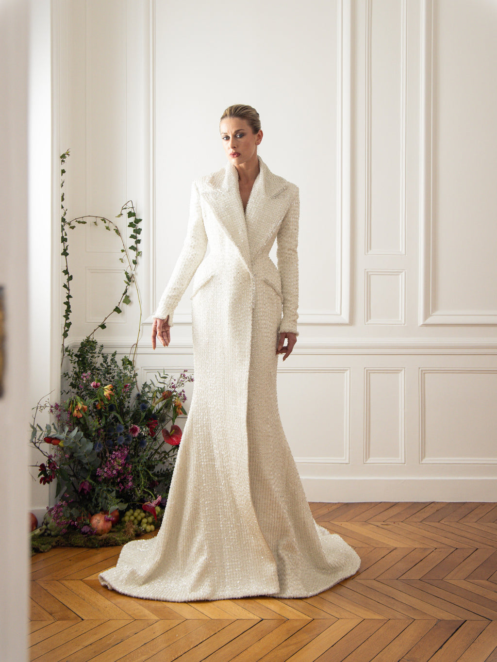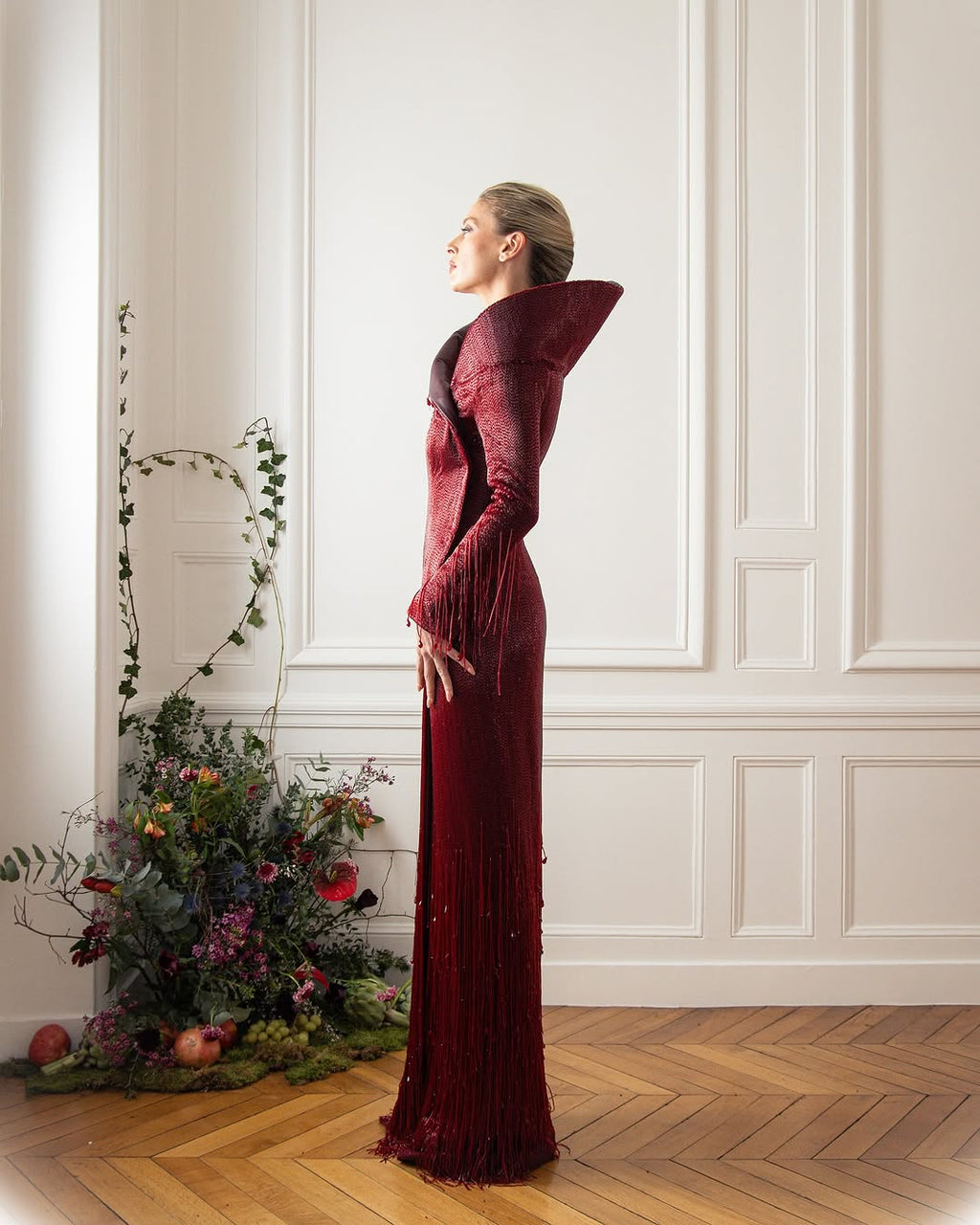 ABAD is a profound tribute to the resilience of the human spirit, encapsulating the layered meanings of always or forever. Forever trying, forever doing, forever being, this serves as a metaphor for the collection's journey honoring the trials and triumphs of the past while embracing the obstacles of the present and looking forward to the future with unshakable optimism. Each piece tells a poignant story of navigating grief, recurring failures, and the unpredictable rhythms of life. Dark, intricate fabrics represent sorrow and struggle, while bold and luminous accents signify hope and renewal. The collection crescendos into designs that embody growth, self-realization, and the triumph of flourishing through adversity. #ABAD captures the essence of enduring challenges and emerging stronger, celebrating the timeless beauty of transformation and the boundless promise of tomorrow. ABAD, also now, also then… the new SS25 Haute Couture Collection by #ElioAbouFayssal.