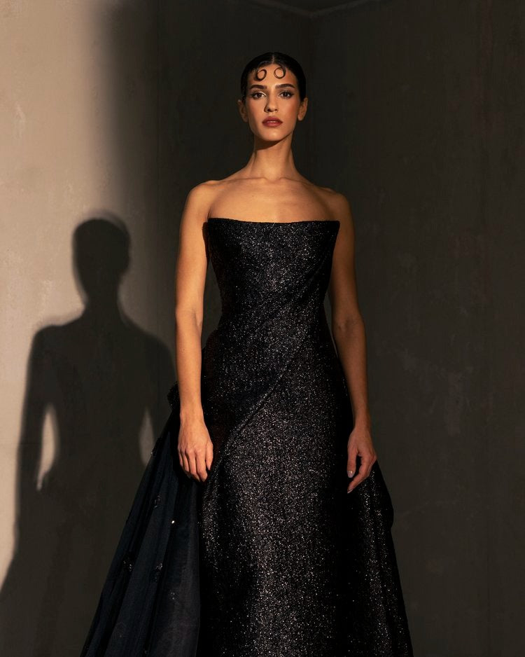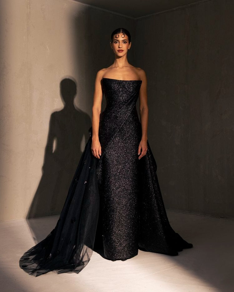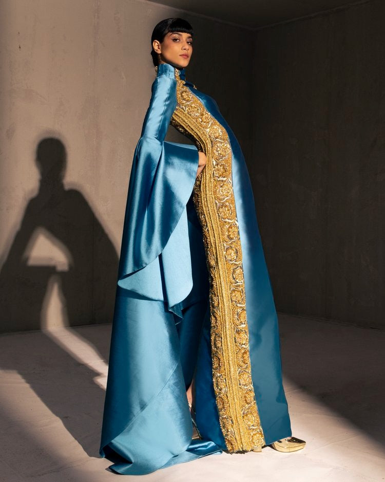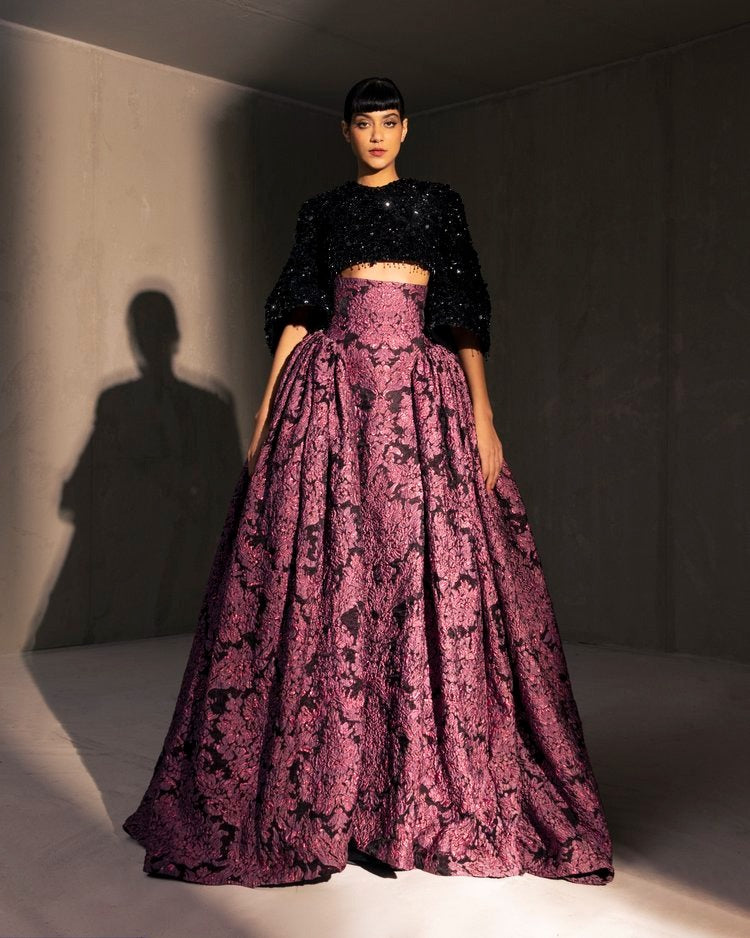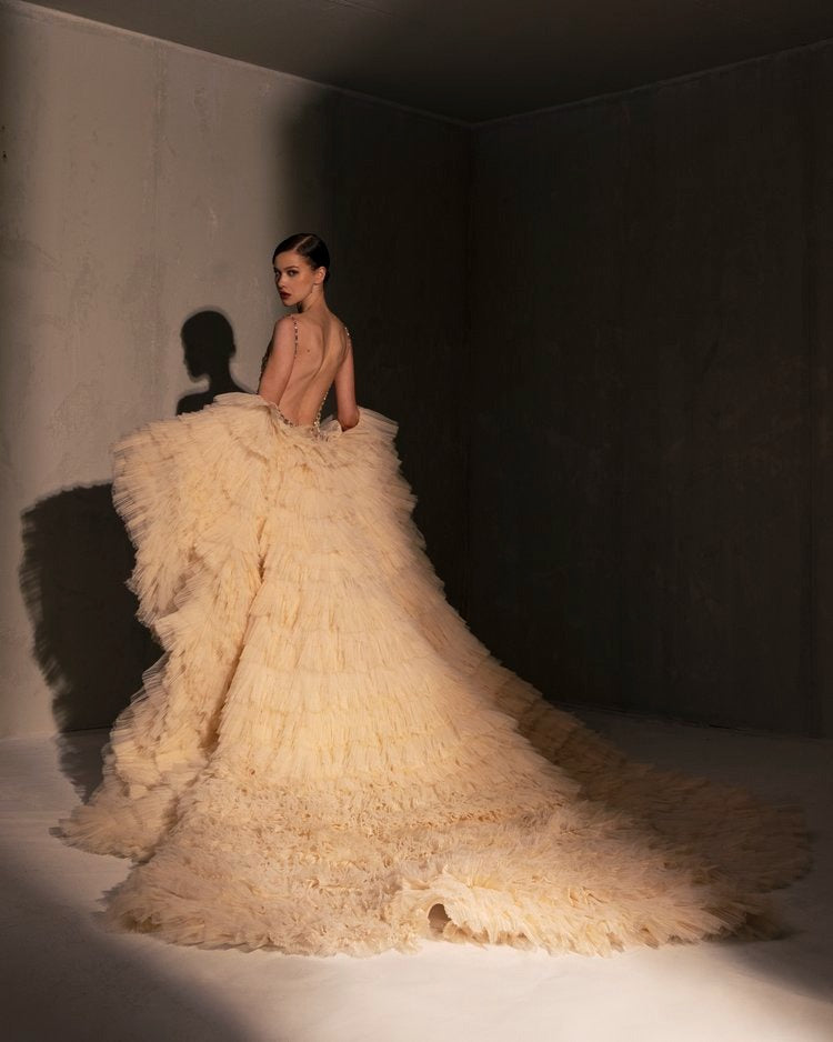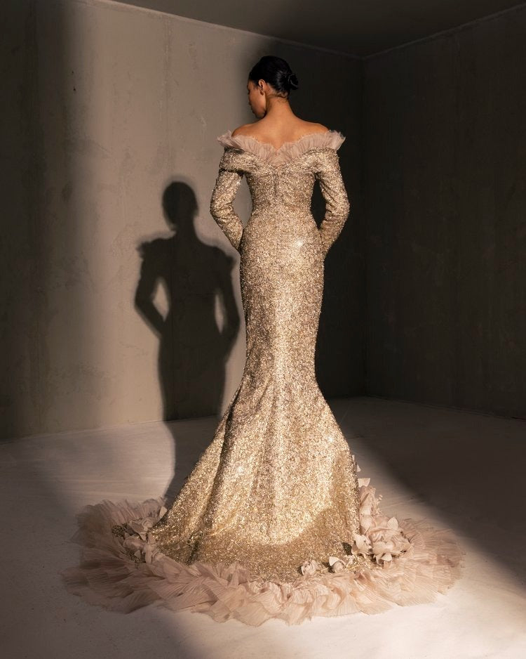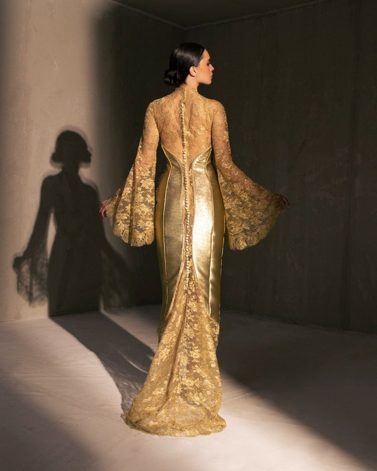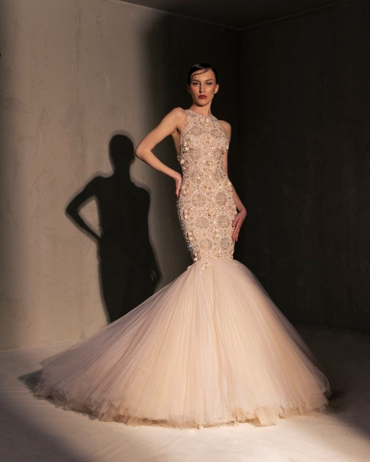 For this year's collection, atelier Elio Abou Fayssal decided to pay homage to spanish heritage. Inspired by flamenco culture, bullfighting, the vibrant spiritual traditions, ceramic murals and sevillian architecture, the designer references the glamour and beauty of Spain in elevated designs and reinterprets techniques with a dash of his unmistakable modernist yet dramatic touch.