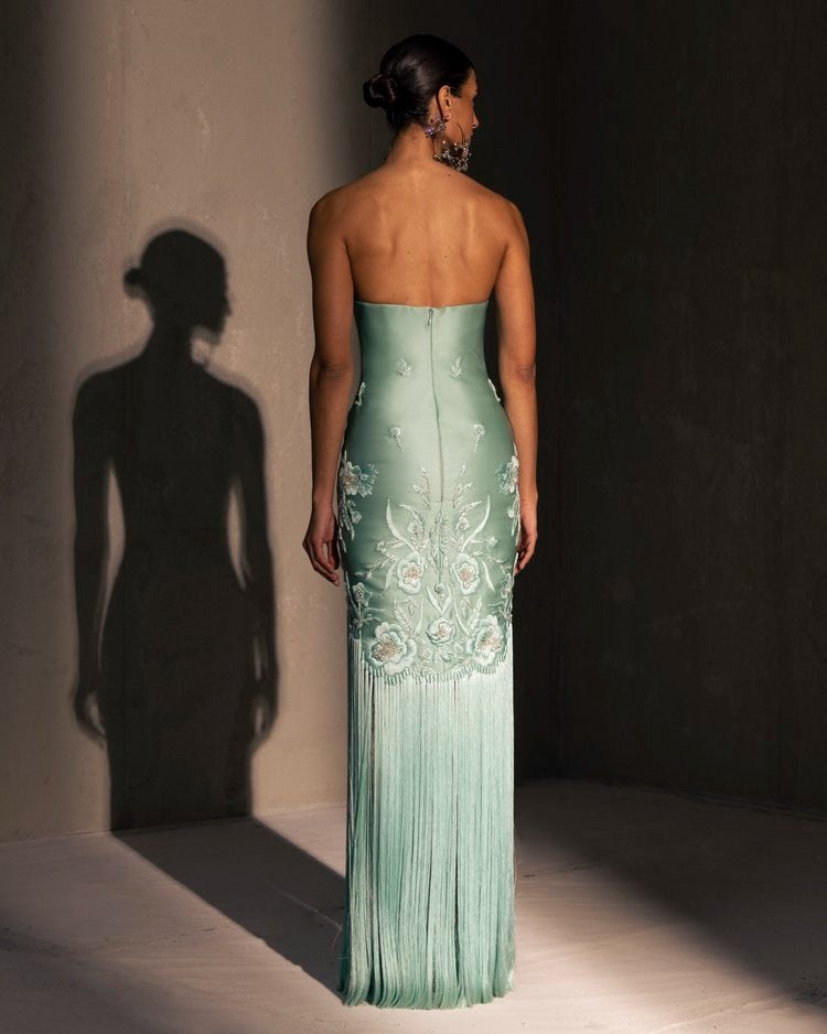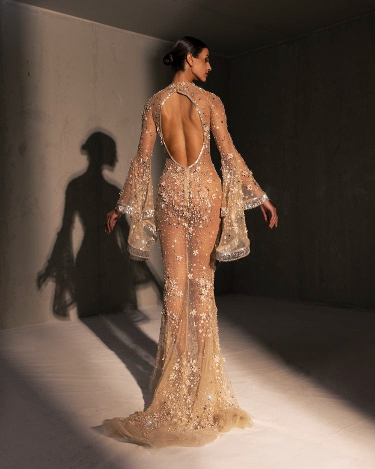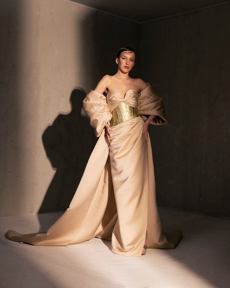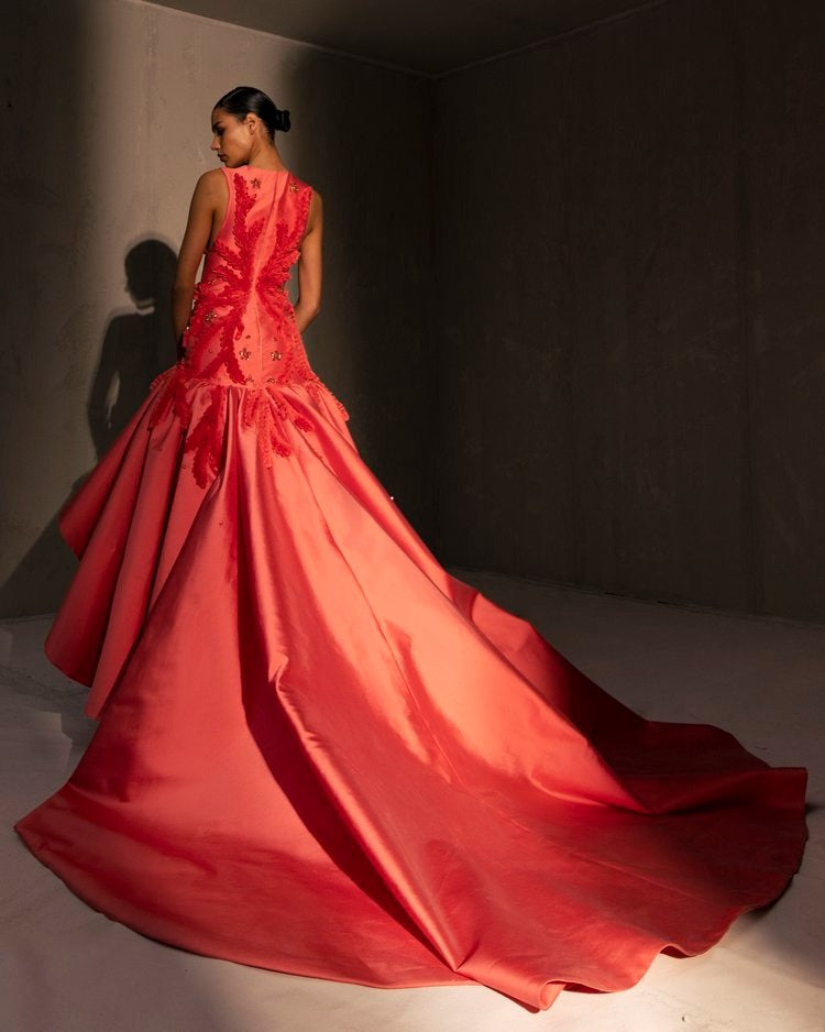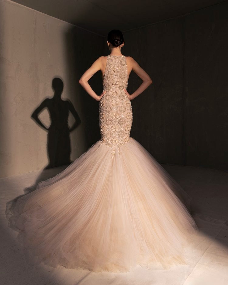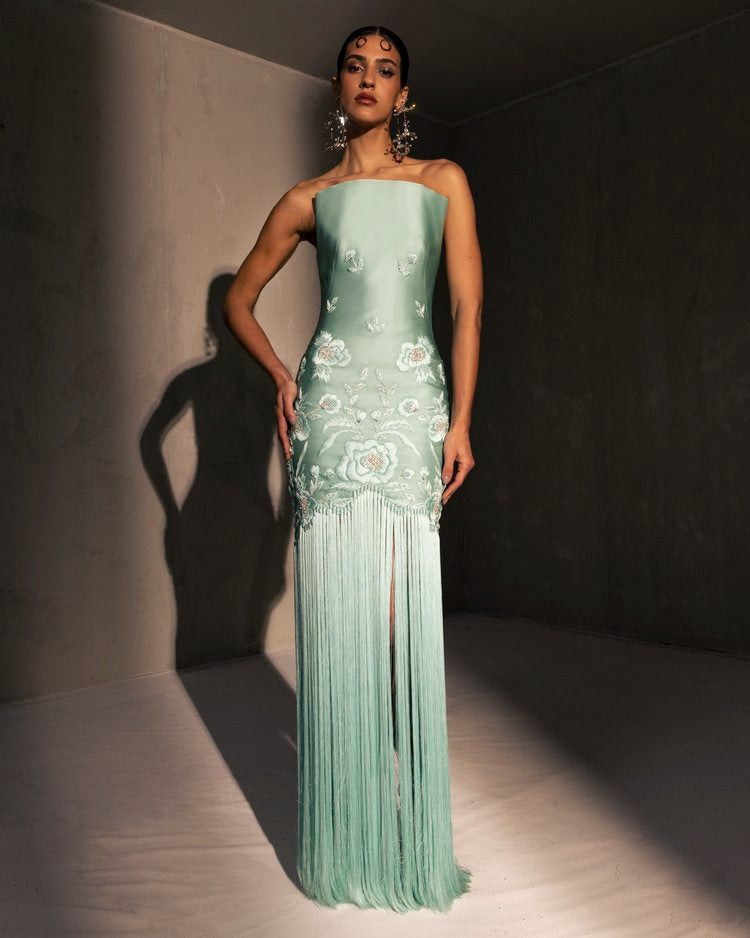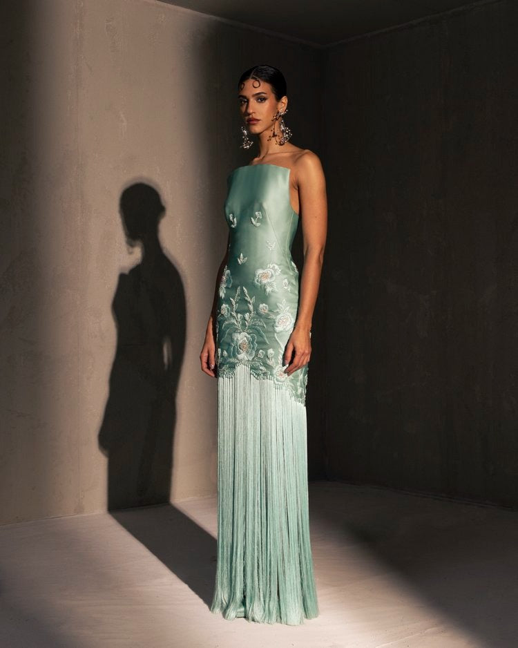 For this year's collection, atelier Elio Abou Fayssal decided to pay homage to spanish heritage. Inspired by flamenco culture, bullfighting, the vibrant spiritual traditions, ceramic murals and sevillian architecture, the designer references the glamour and beauty of Spain in elevated designs and reinterprets techniques with a dash of his unmistakable modernist yet dramatic touch.