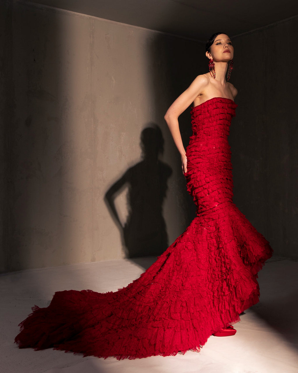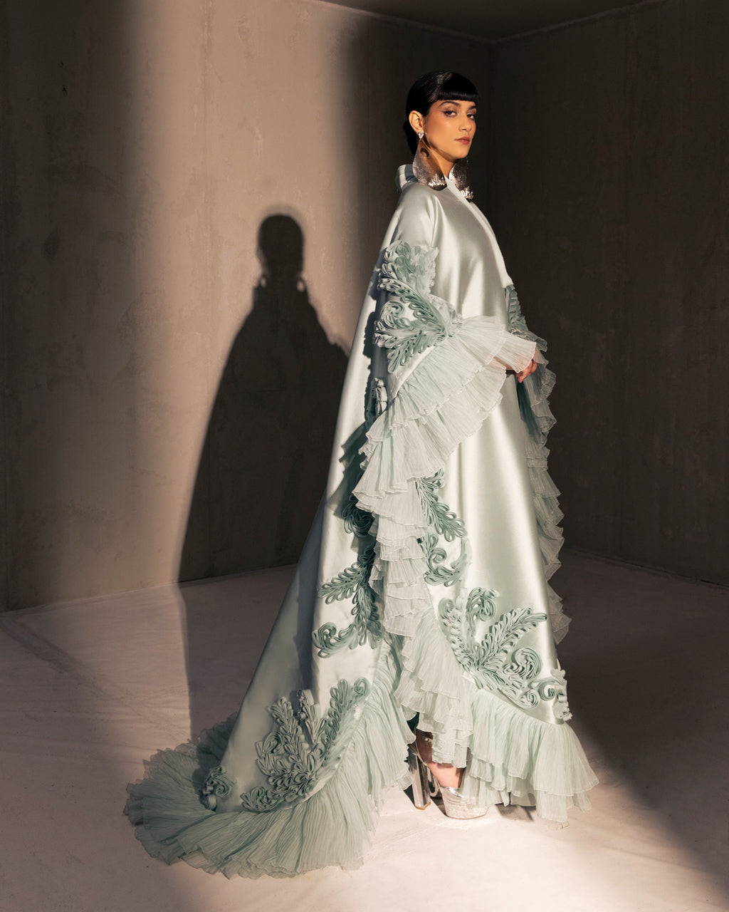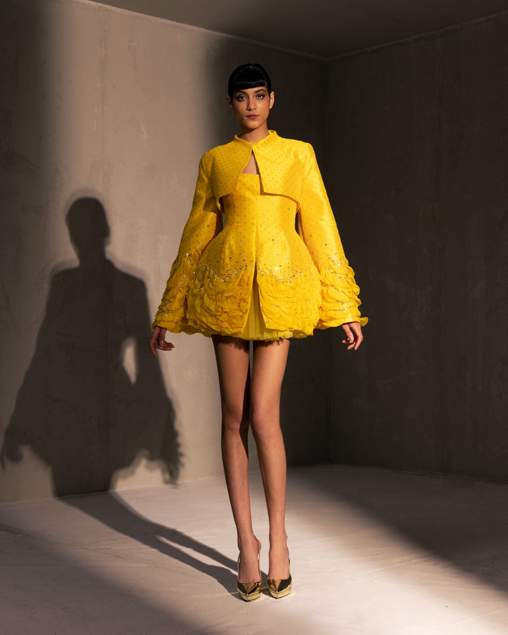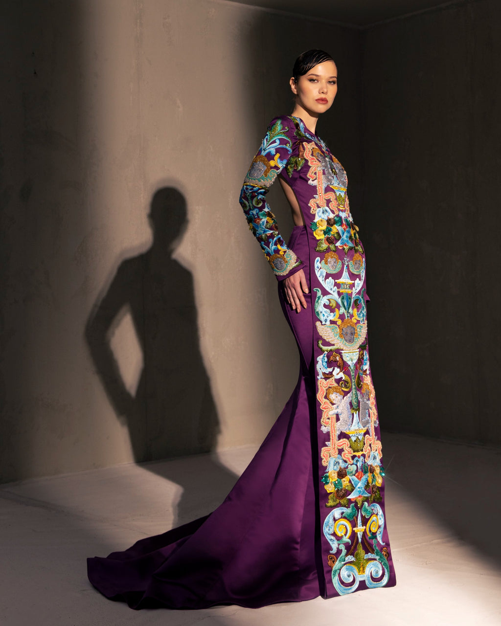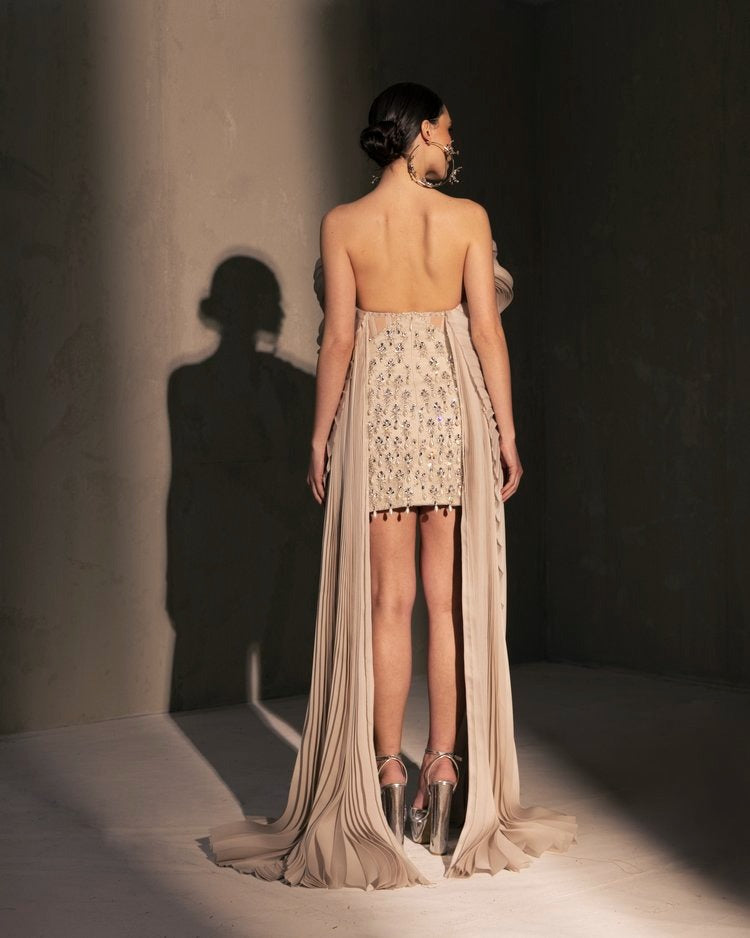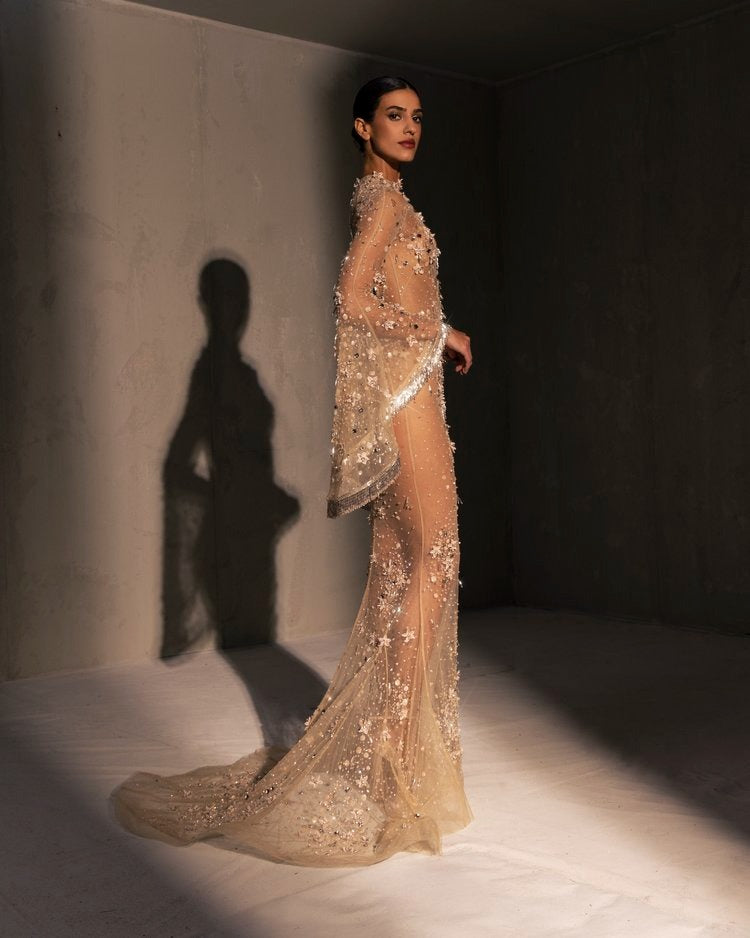 For this year's collection, atelier Elio Abou Fayssal decided to pay homage to spanish heritage. Inspired by flamenco culture, bullfighting, the vibrant spiritual traditions, ceramic murals and sevillian architecture, the designer references the glamour and beauty of Spain in elevated designs and reinterprets techniques with a dash of his unmistakable modernist yet dramatic touch.