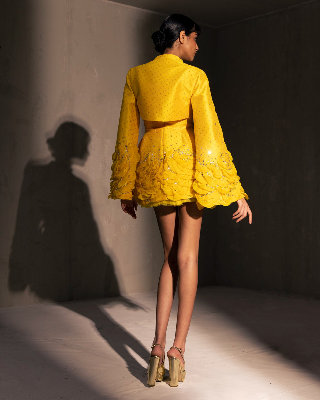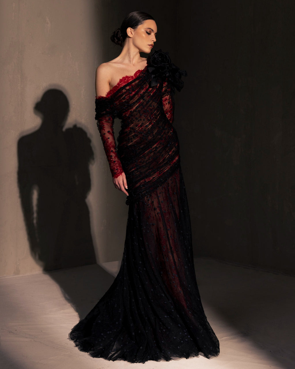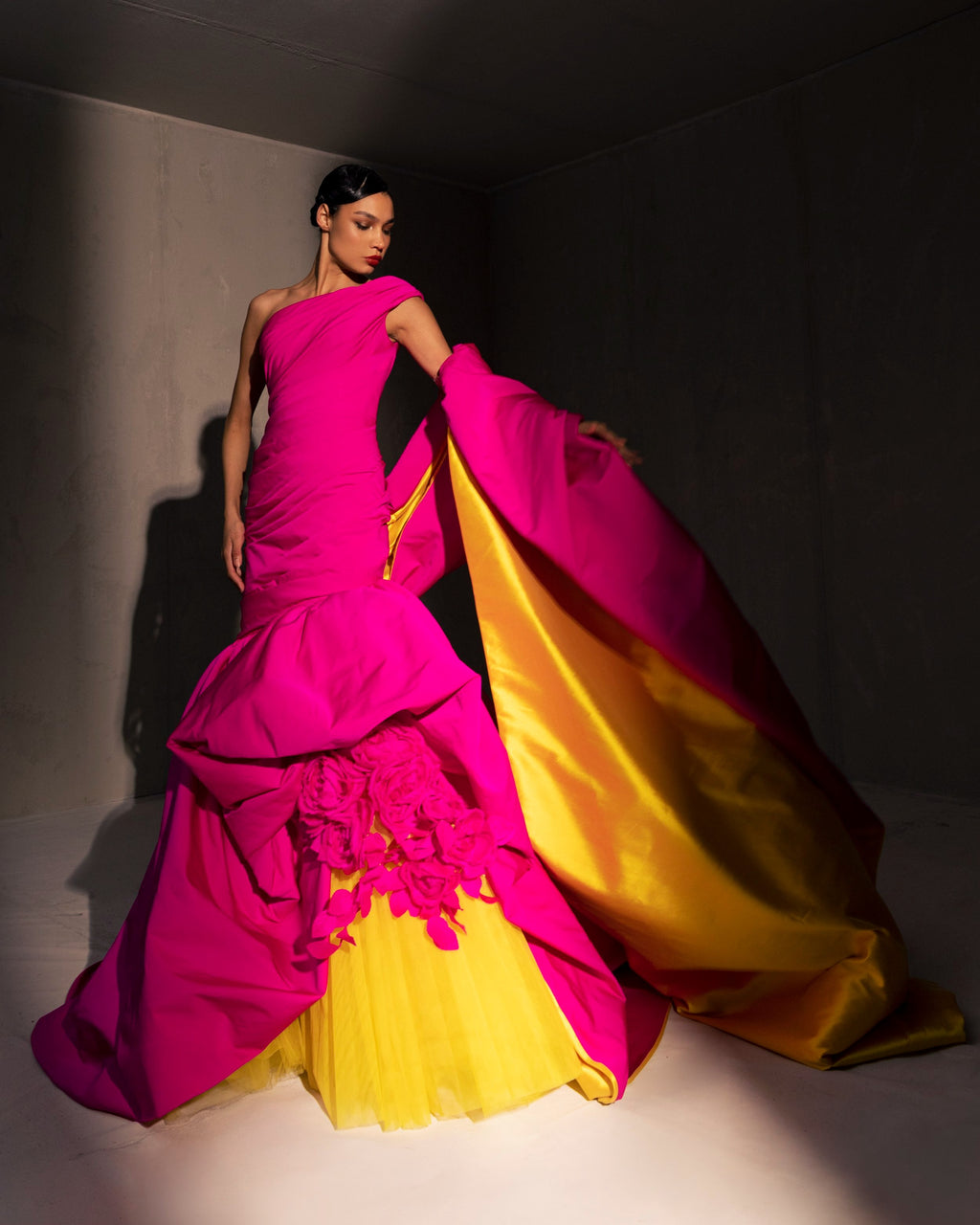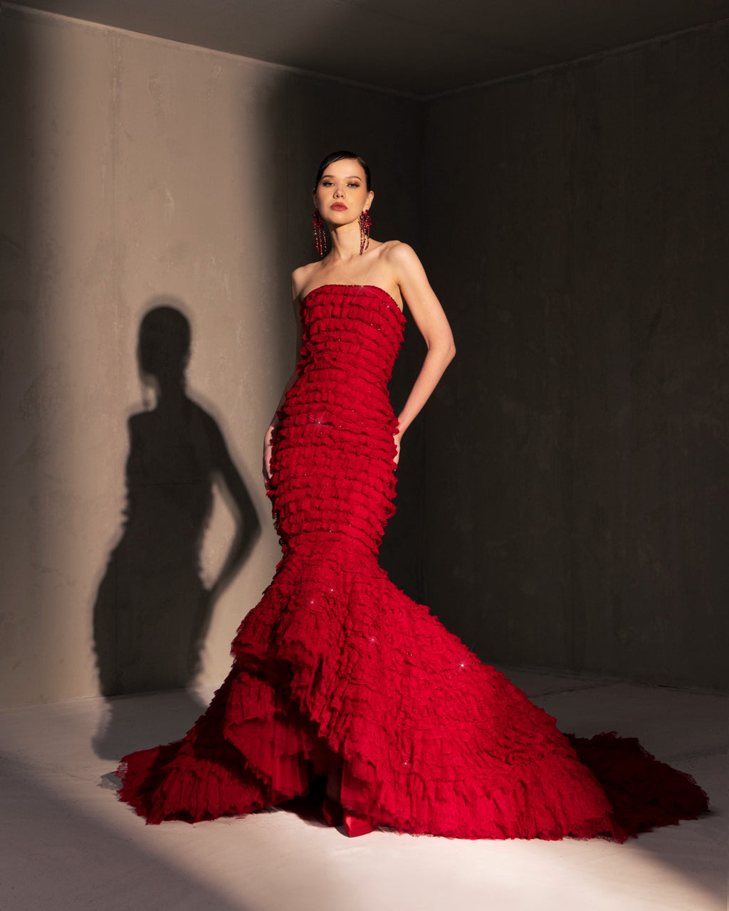 For this year's collection, atelier Elio Abou Fayssal decided to pay homage to spanish heritage. Inspired by flamenco culture, bullfighting, the vibrant spiritual traditions, ceramic murals and sevillian architecture, the designer references the glamour and beauty of Spain in elevated designs and reinterprets techniques with a dash of his unmistakable modernist yet dramatic touch.