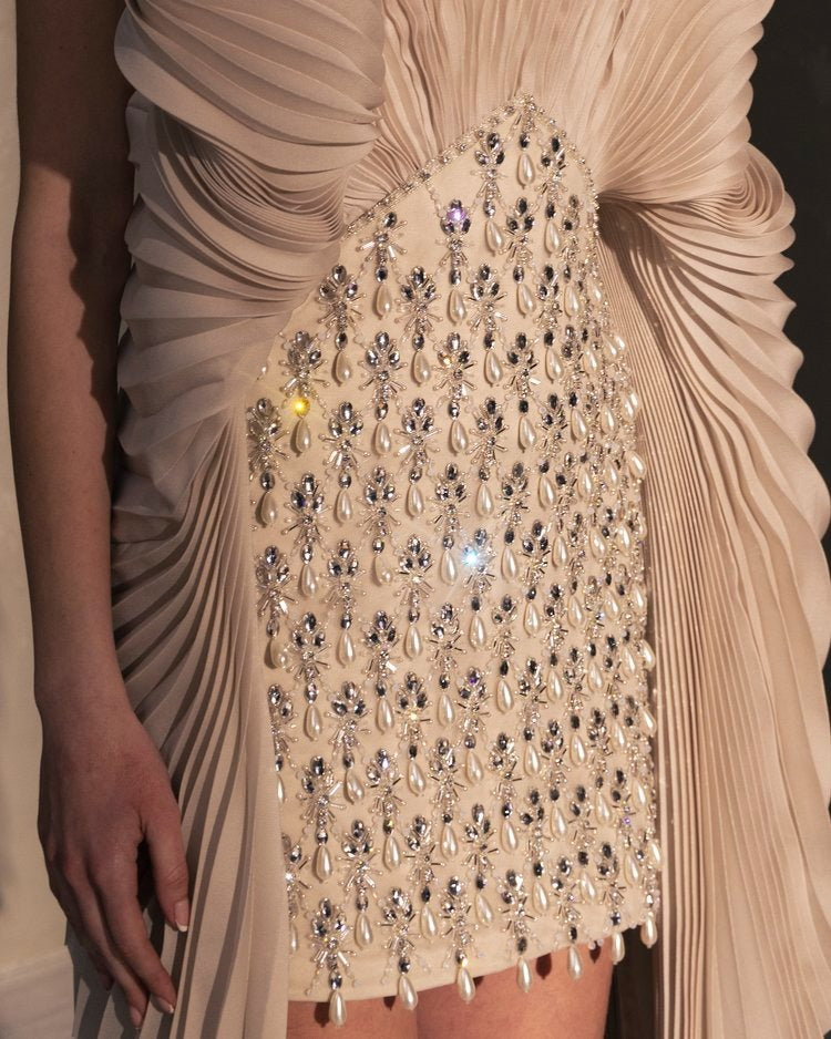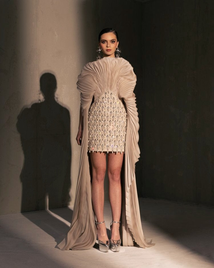 Originating from Ancient Greek mythology as a form of ululation in the ritual of cry, it later became hispanicized into meaning bravo and expressing the appreciation of outstanding performance. A passionate shout that often accompany bullfighters and dancers at peak moments of their show, and what better word to serve also as a nod to incredibly intricate details and the masterful craftsmenship of our artisans other than OLE, the SS24 collection by Elio Abou Fayssal.
