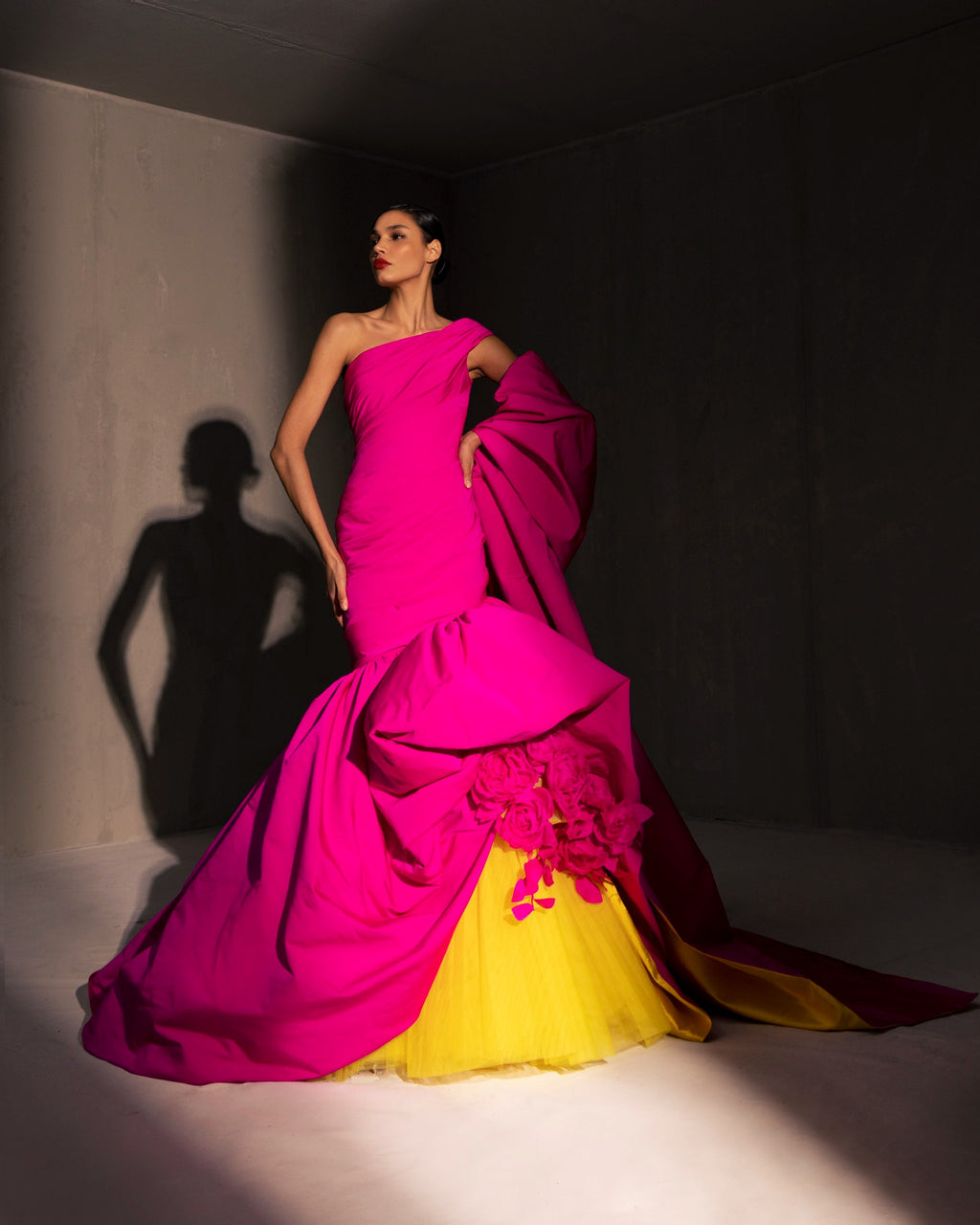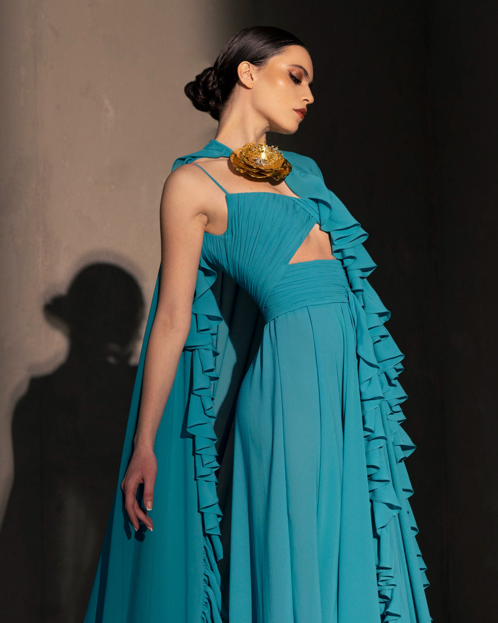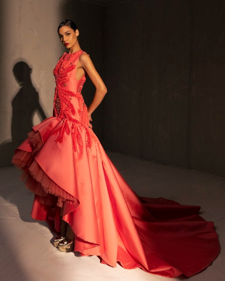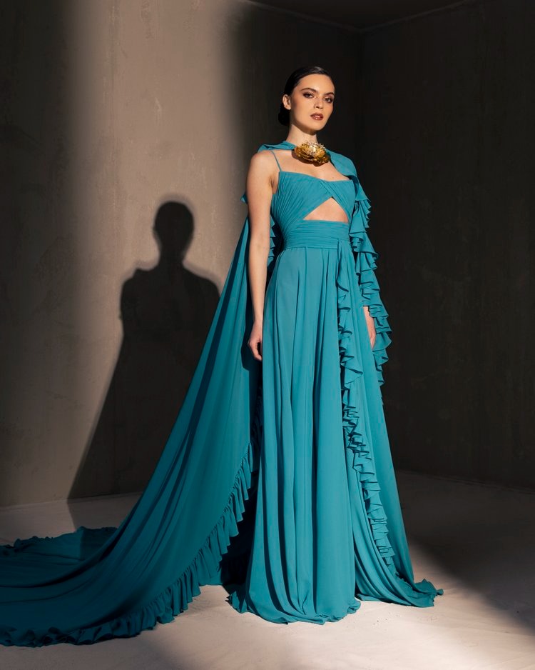 Colourful and vibrant fabrics, playful silhouettes, mesmerising details worthy of an Olé for every step taken in these dresses. Evident through the collection are the glamorous attitude towards torero panache mixed with flamboyant flamenco confidence which find their way into reinvented costumes and traditional dresses embodying a contrast between heritage aesthetics and bold modern lines true to Elio Abou Fayssal.