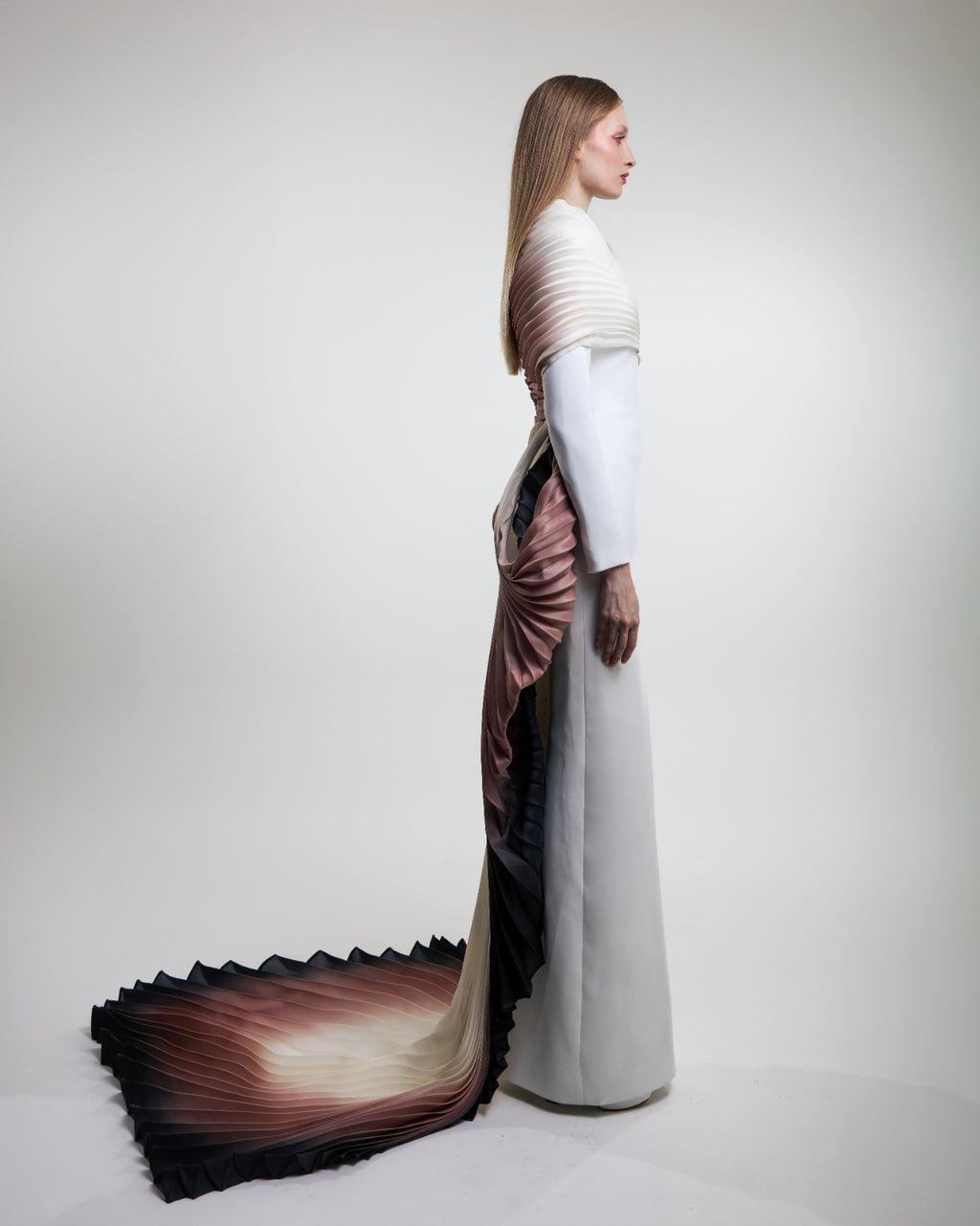 OMSIYA marks a new chapter for Elio Abou Fayssal, an evolution of Arab couture that blends the craftsmanship of couture with the lightness of ready-to-wear.