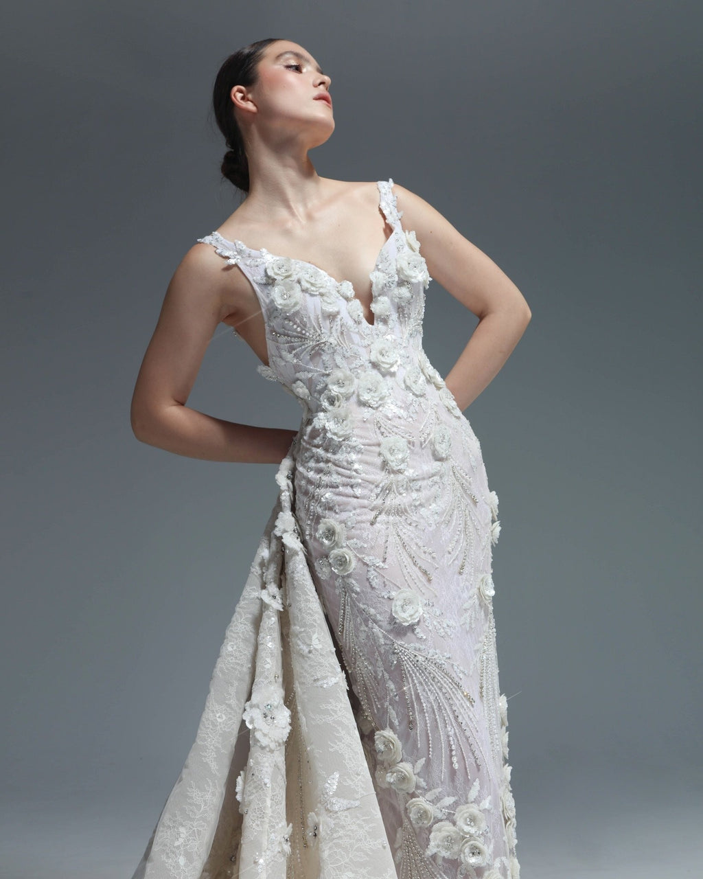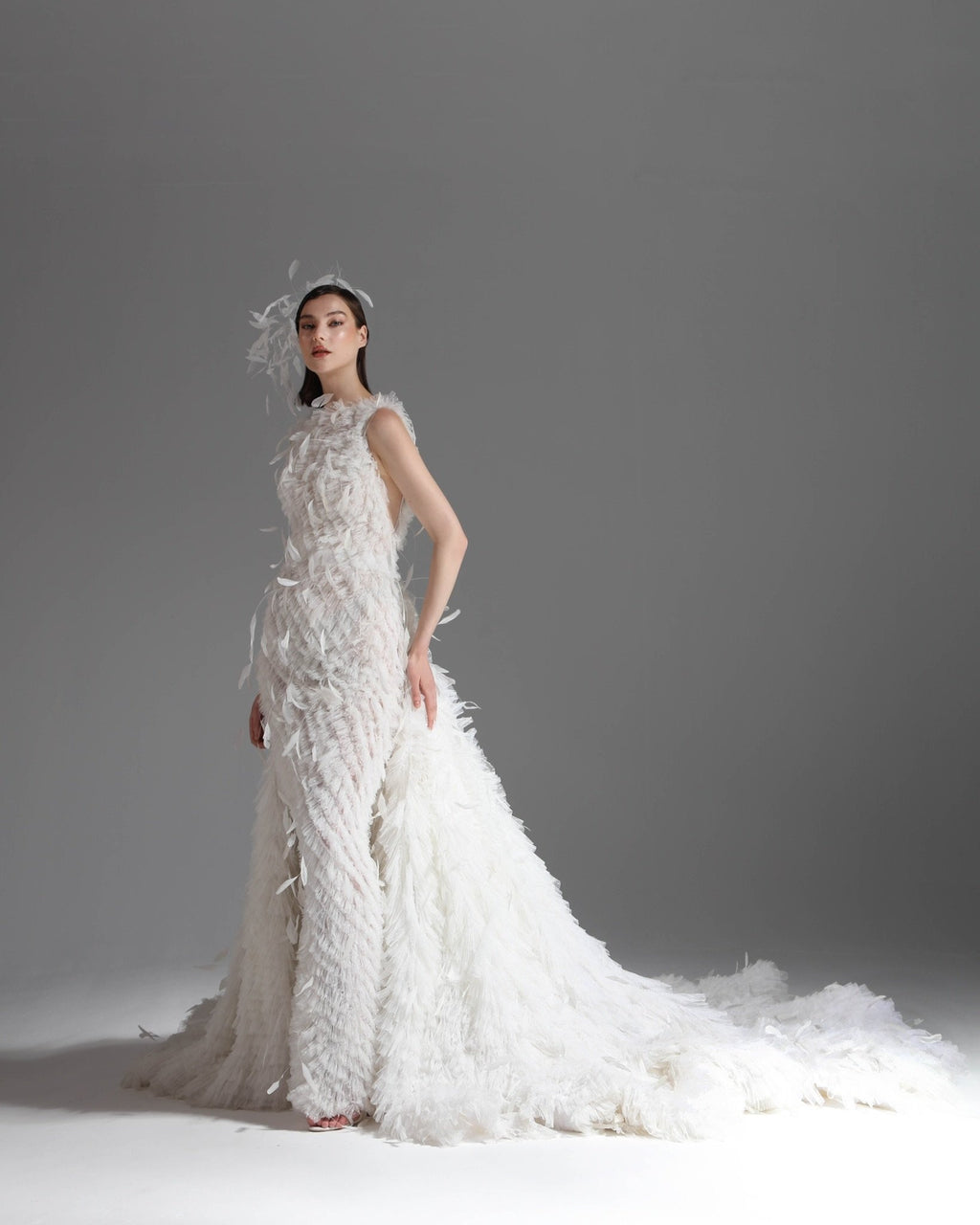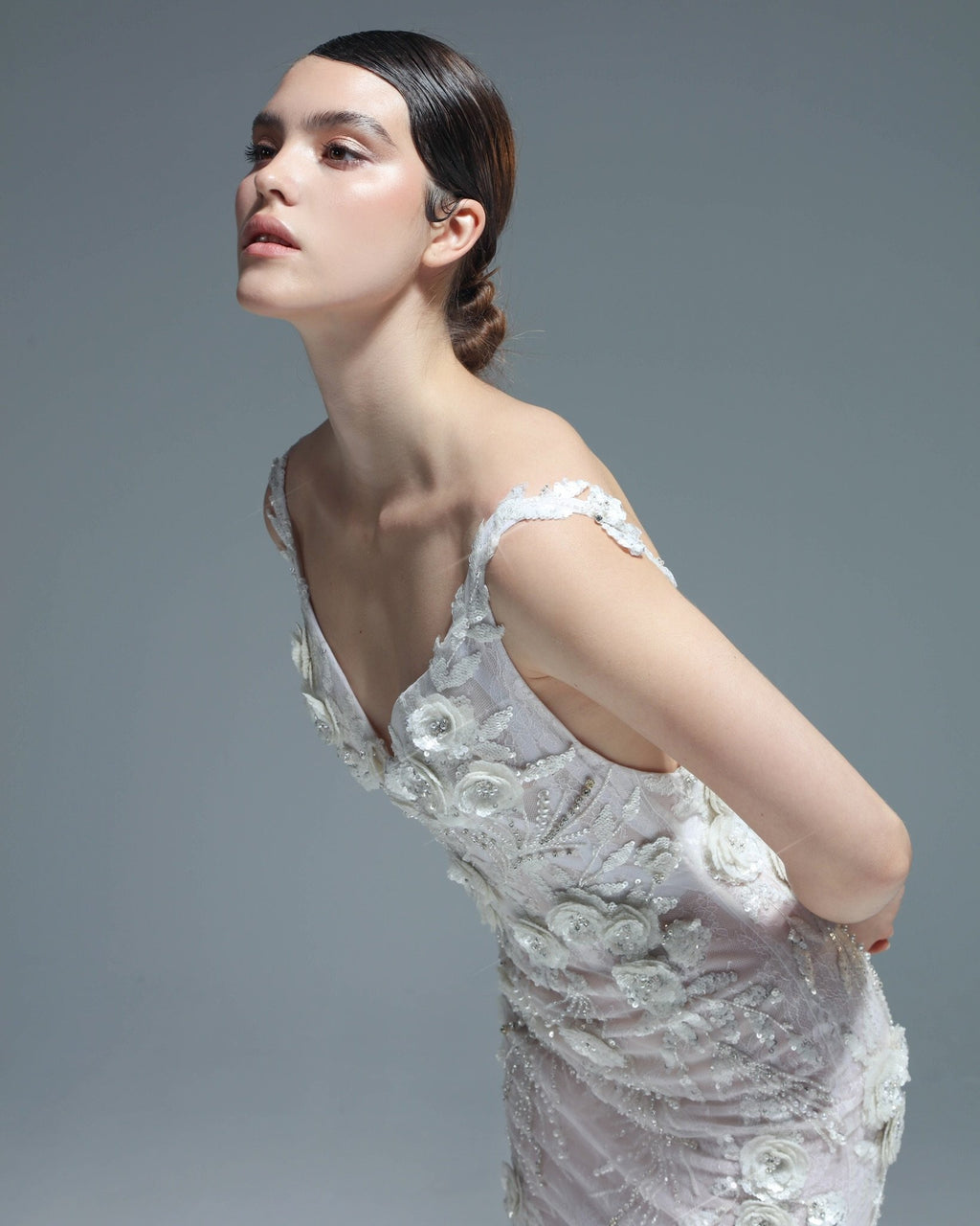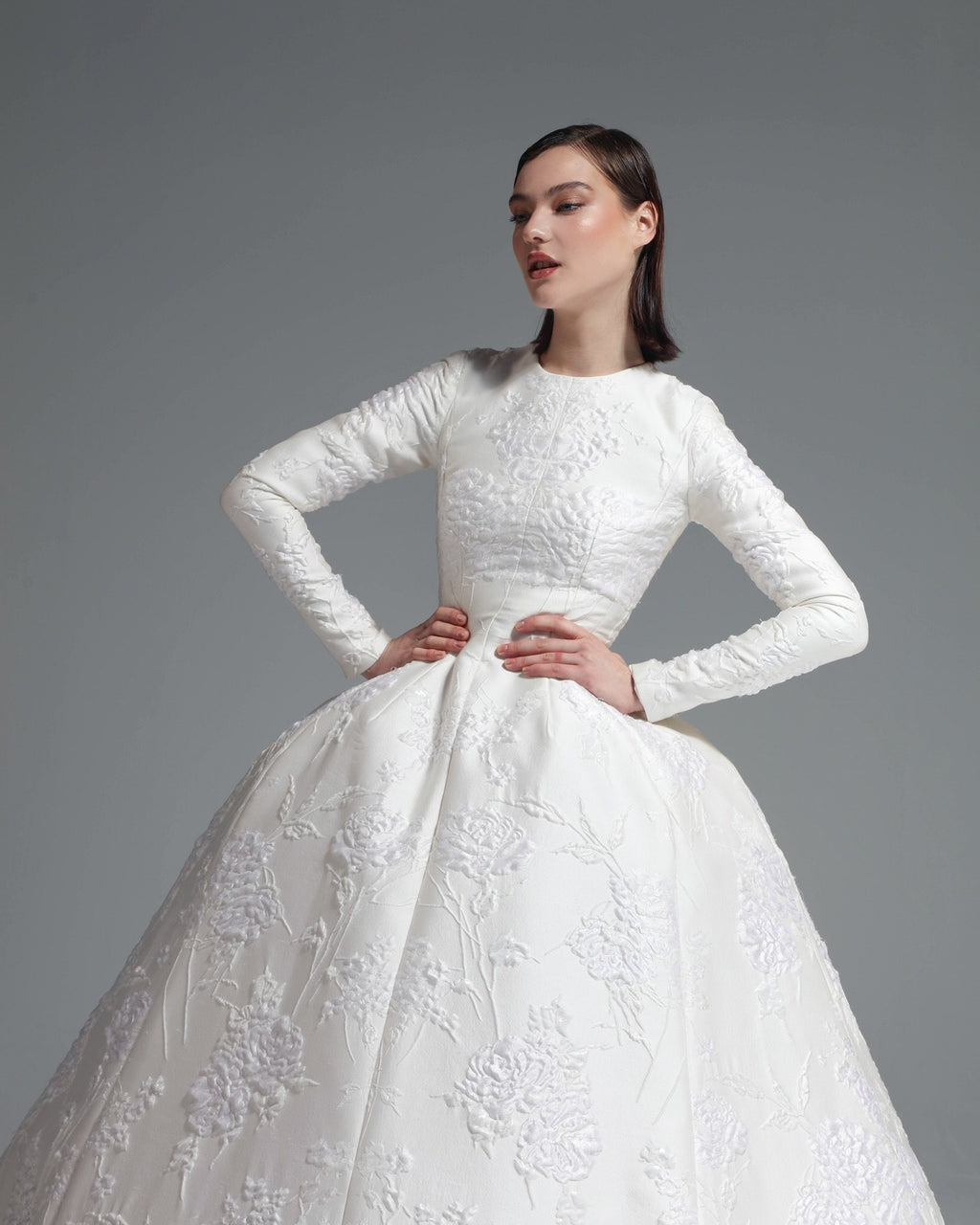 Bridal collection by Elio Abou Fayssal that offers a wide range of cuts and silhouettes. A collection that showcases the atelier's savoir faire and plays on materiality and execution, thus catering to a wide range of future brides.